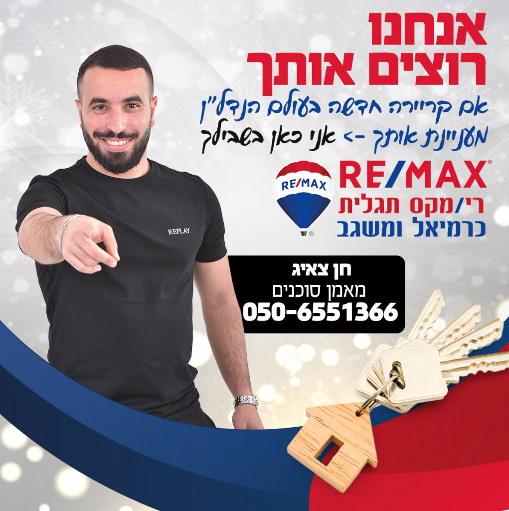 רי/מקס “תגלית” כרמיאל, הנותן שירות לתושבי ישובי משגב, כרמיאל וגליל עליון, מזמינים אותך להצטרף לנבחרת מנצחת!