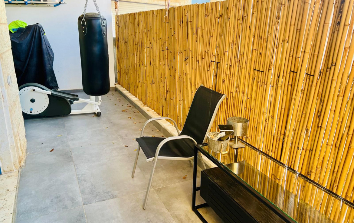 גינה יפה, כ-75 מ״ר. בנוסף לכניסות הרגילות לדירה יש גם כניסה פרטית ישירות מהגינה (במקום מהבניין).