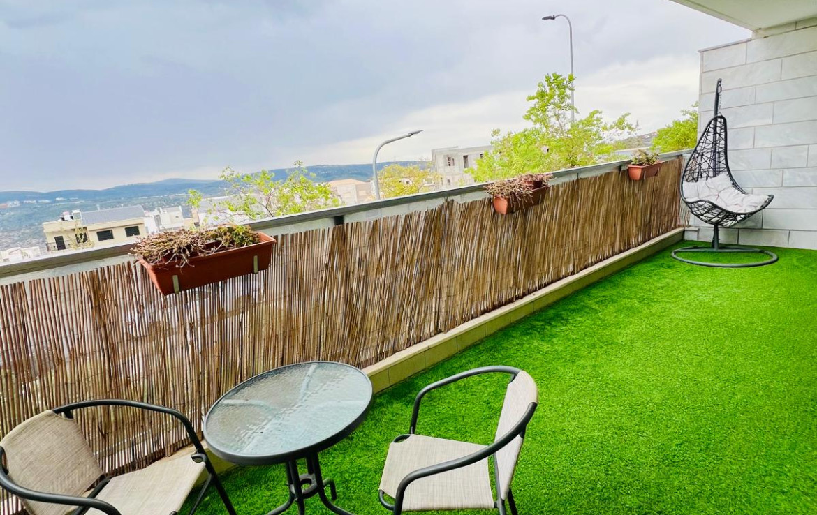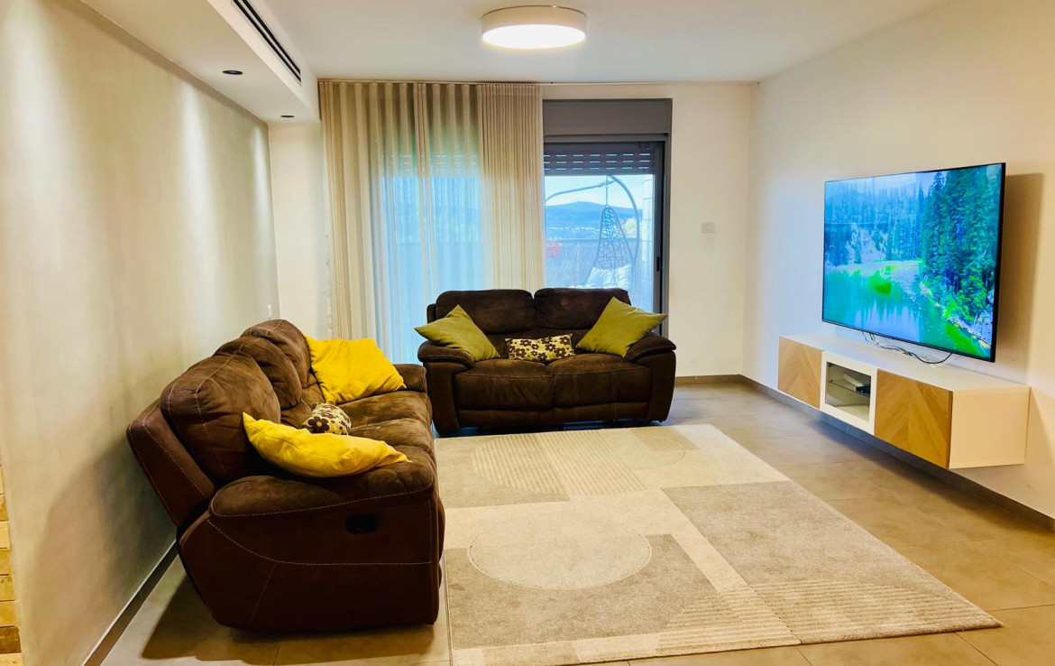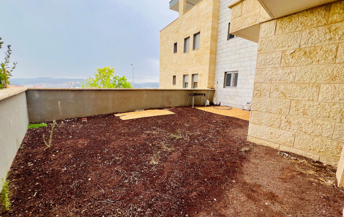 למכירה ברחוב אביב דירת גן ענקית וחדשה בשכונת הר נבון .לדירה מרפסת של כ- 19.5 מ"ר מהסלון יפה ומרווחת לנוף + גינה יפה כ- 60 מ"ר.