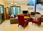 בקומת הכניסה: סלון עם קמין נפט, מטבח, פינת אוכל, שירותי אורחים ויציאה לגינה.