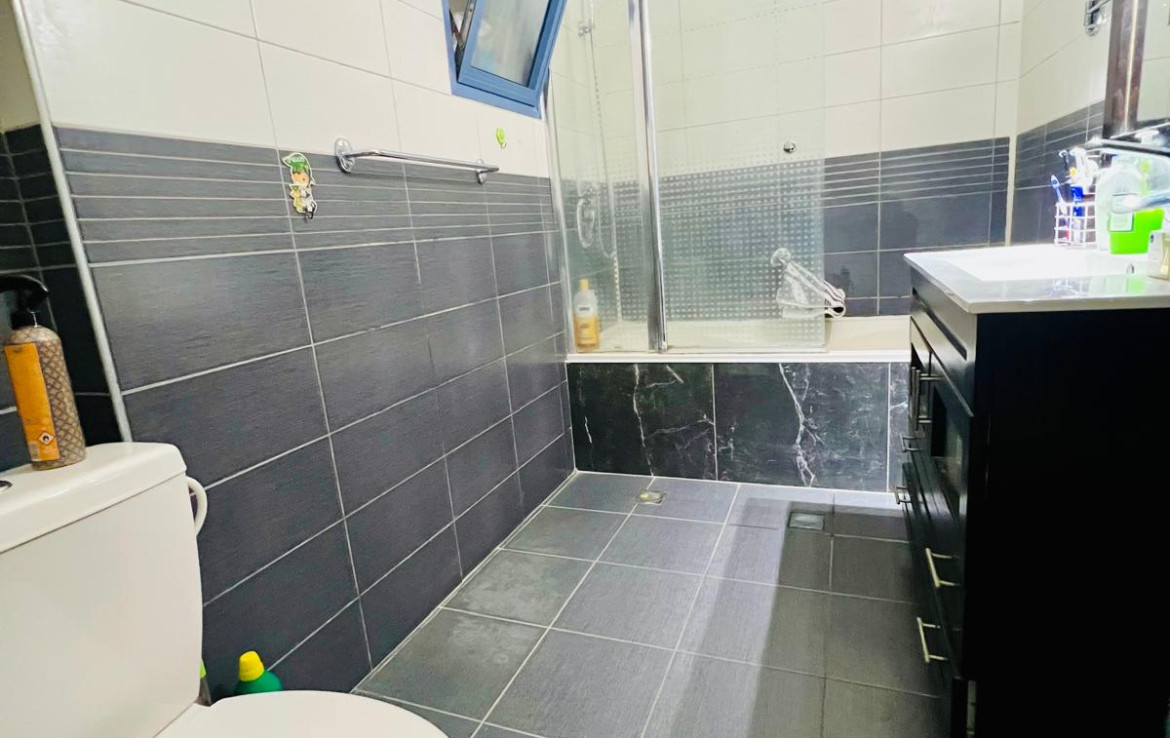 עם 2 שירותים ומקלחת אחת (עברו שיפוץ לאחרונה).כולל חניה ומחסן צמודים בטאבו.