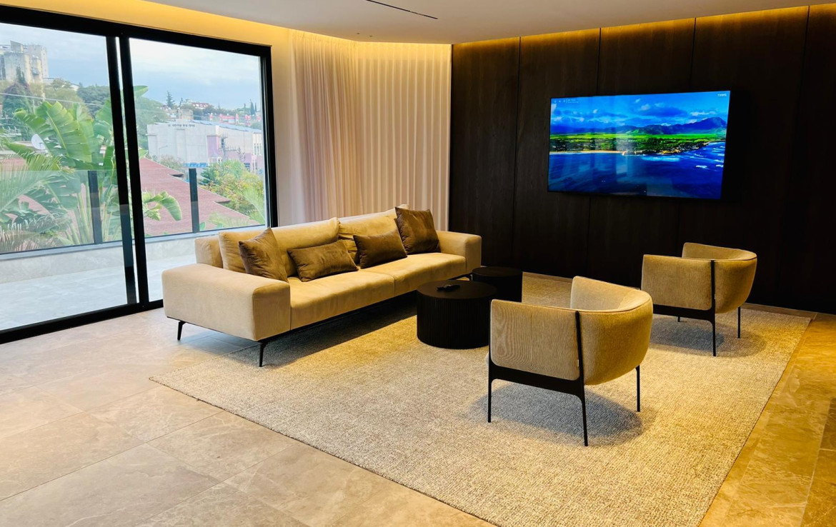 ▫️חלל מרכזי מרווח ופתוח: סלון גדול מאוד, מטבח מרווח, אי גדול, ושירותי אורחים.